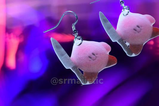 (READY TO SHIP) Kirby with a Knife Meme Handmade Earrings!
