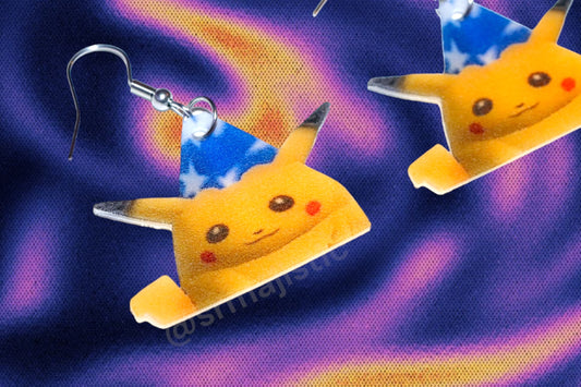 Wizard 8-Bit Pikachu Funny Pokémon Character Handmade Earrings!