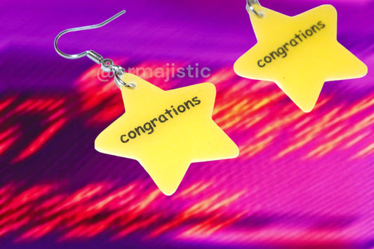 ‘Congrations’ Gold Star Sticker Funny Handmade Earrings!