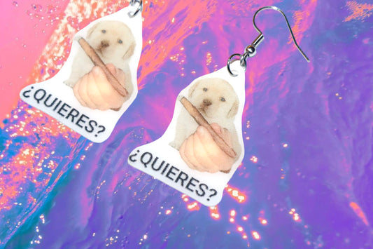 ¿QUIERES? Dog Offering Smokes Funny Meme Handmade Earrings!