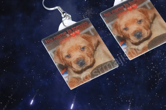 ‘His name is Tomato Soup ♥️♥️’ Cute Dog Funny Meme Handmade Earrings!