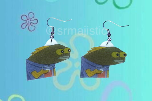 YOU WHAT? Fish Drinking SpongeBob Meme Handmade Earrings!