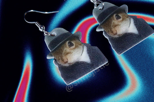 (READY TO SHIP) Mobster Mafia Squirrel Funny Meme Handmade Earrings!