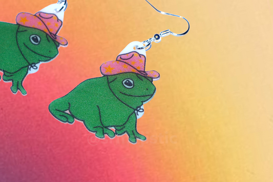 (READY TO SHIP) Cowboy Frog Cute Handmade Earrings!