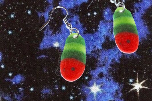 (READY TO SHIP) Cute Red and Green Wormie Handmade Earrings!