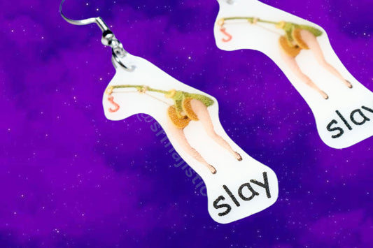 (READY TO SHIP) Fishing Rod with Legs Toy Story Slay Meme Handmade Earrings!