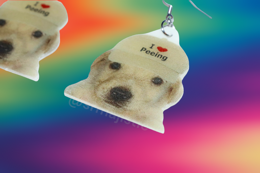 (READY TO SHIP) I Heart Peeing Jotchua Dog Funny Handmade Earrings!