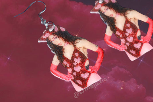(READY TO SHIP) Chappell Roan in a Pink Heart Cowboy Outfit Cute Aesthetic Handmade Earrings!