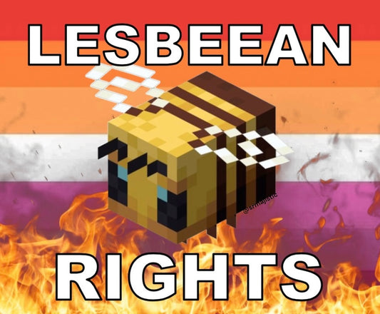 Bumper Sticker of Lesbeean Minecraft Bee Meme Flaming Pride Flag