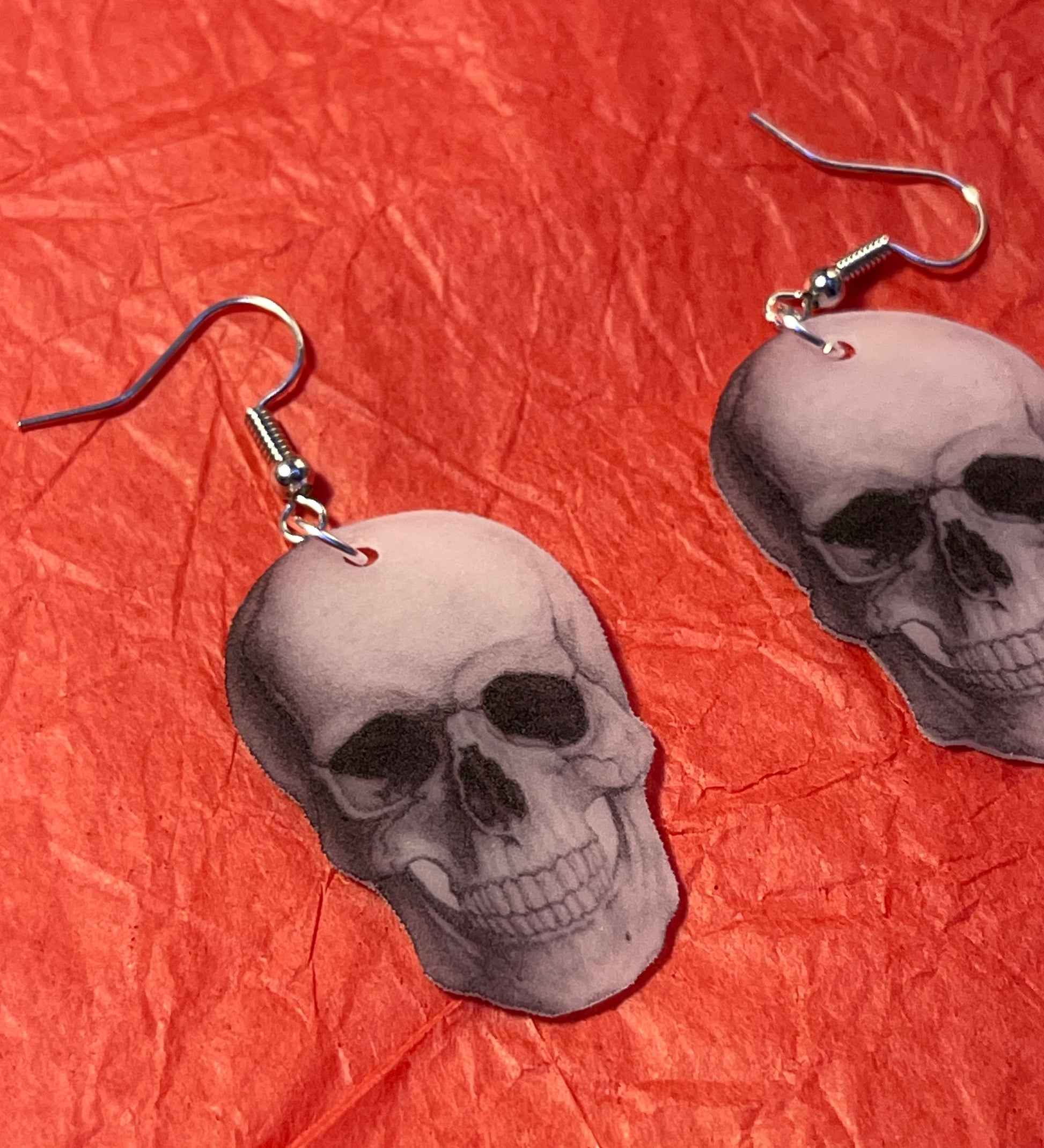 (READY TO SHIP) Detailed Skeleton Skull Handmade Earrings!