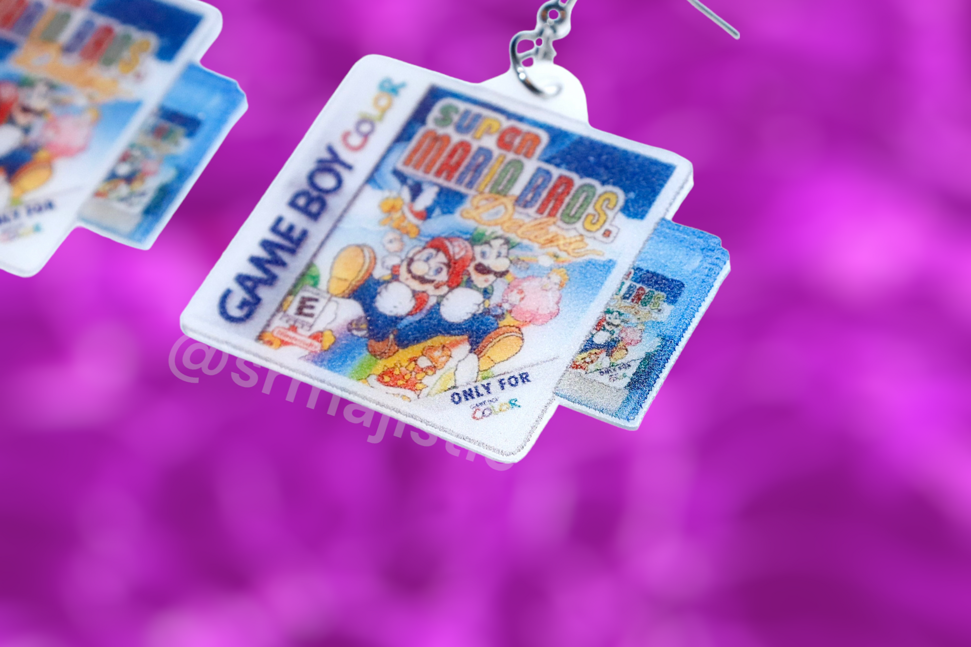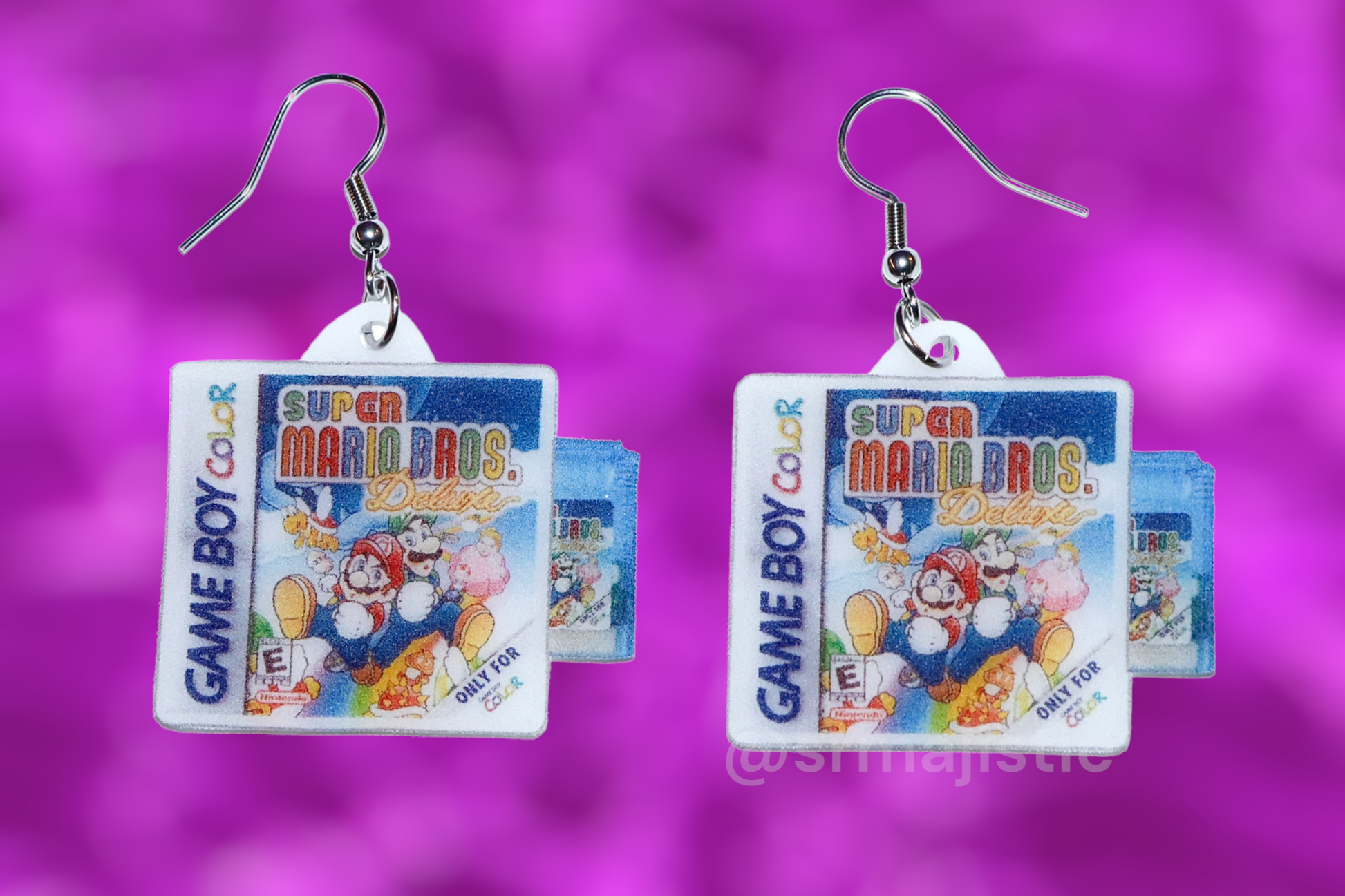 (READY TO SHIP) Super Mario Bros Deluxe Game Boy Color Game 2D detailed Handmade Earrings!
